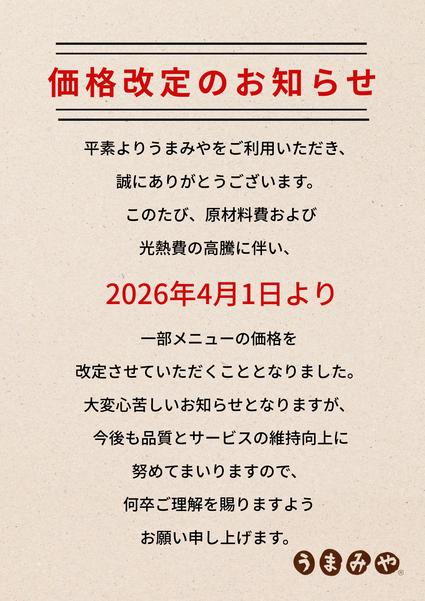 価格改定のおしらせ
